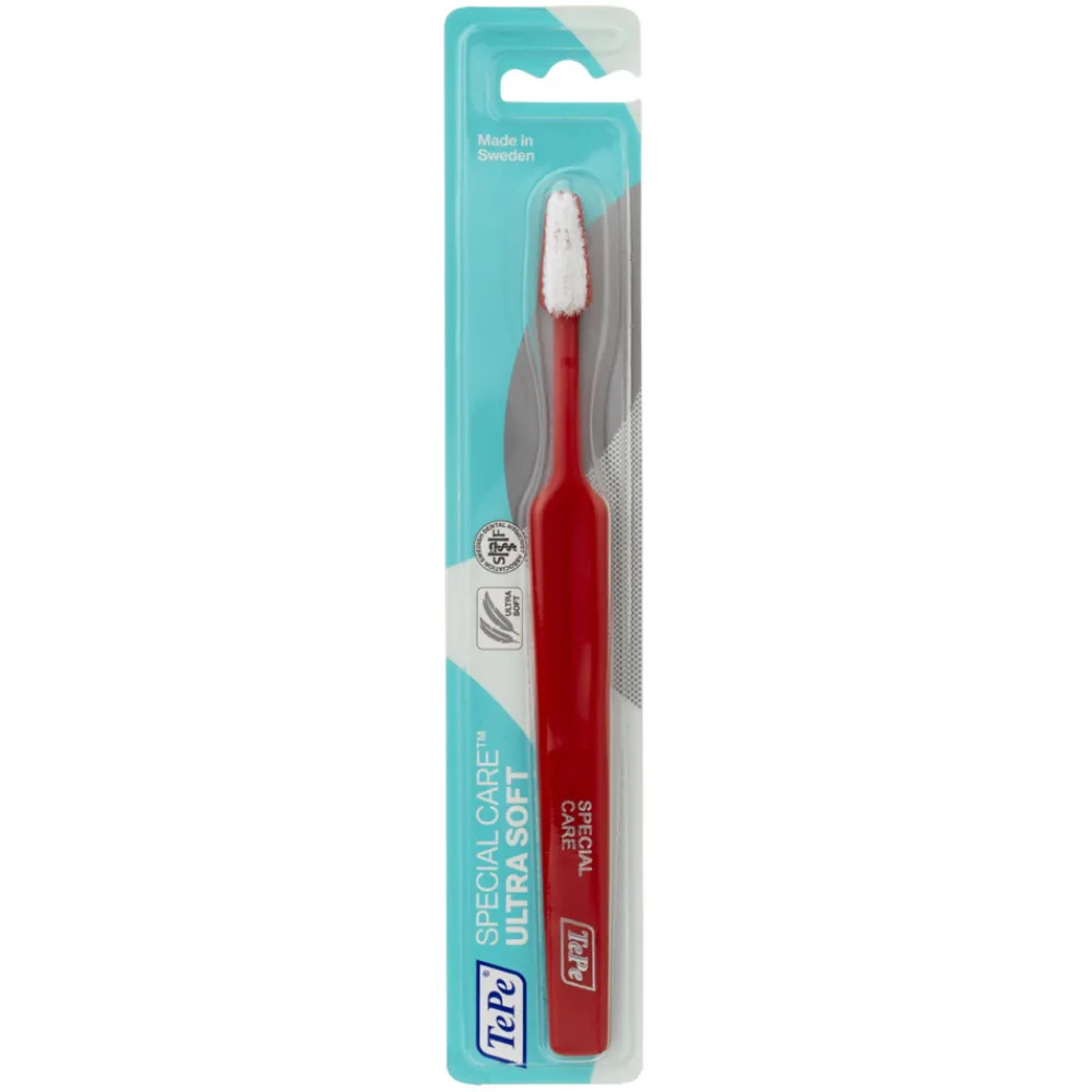 De TePe Special Care is een tandenborstel met 12.000 ultrazachte borstelharen. Deze tandenborstel wordt aanbevolen na kaakchirurgie en voor patiënten met pijnlijk of zeer kwetsbaar mondweefsel, zeer gevoelige worteloppervlakken, een extreem droge mond en na radiotherapie. De borstelhals kan, nadat deze goed verwarmd is onder warm water, naar achteren worden gebogen voor nog meer grip en toegankelijkheid.