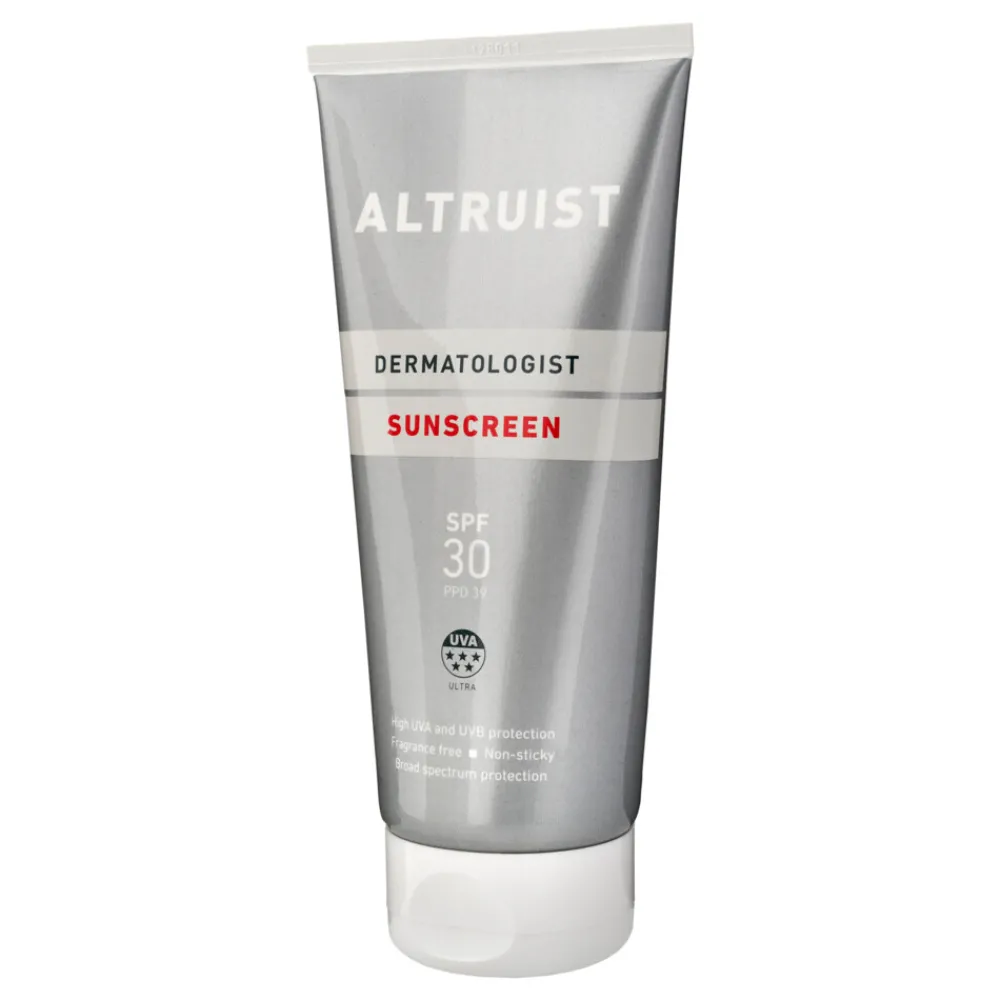 Altruist Zonnebrand Creme SPF 30 is ontwikkeld door dermatologen. Deze dermatologen willen het risico op huidkanker verkleinen door het stimuleren en verhogen van het gebruik van zonbeschermingsproducten samen met een betere kennisoverdracht. Altruist Sun Cream is ontwikkeld voor alle huid typenen is geschikt voor de gevoelige huid omdat het hypoallergeen is en vrij van parabenen en parfum.
