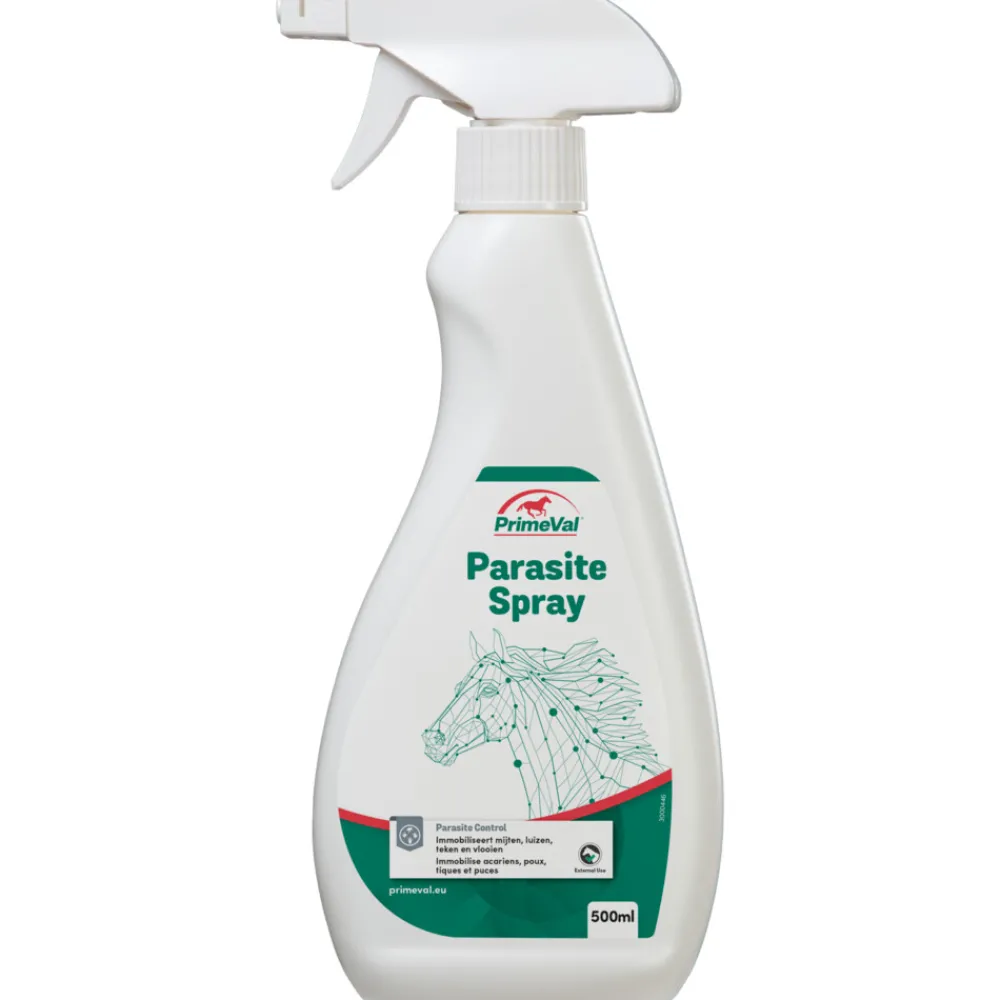 PrimeVal Parasite Spray immobiliseert parasieten zoals mijten, luizen, teken, muggen en vlooien op puur fysieke wijze. PrimeVal Parasite Spray bevat geen (chemische) insecticiden, maar siliconen (Dimethicon) die een plakkend laagje om de parasieten aanbrengen. Hierdoor kunnen ze niet meer bewegen en vallen ze spontaan uit de vacht of kunnen eenvoudig uitgeborsteld worden. De spray heeft een verzorgende werking op de vacht gedurende 8-10 dagen. De vacht wordt niet plakkerig. De toegevoegde Aloë vera ondersteunt bij het behoud van een gezonde vacht en huid.