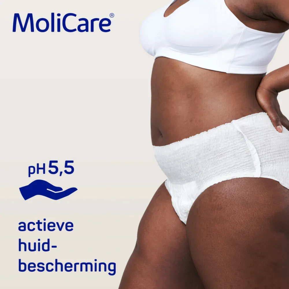 Molicare Premium Mobile 8D LGE 2015 ml Absorptie disposable incontinentiebroekjes (Pull-ups) worden aangetrokken en gedragen zoals textiel ondergoed. Daarom worden ze vaak aangeduid als incontinentieondergoed of optrekbroekjes. Incontinentiebroekjes worden geleverd als volledig samenhangend product, zonder bevestigingssystem zoals kleefstroken. Door integratie van een absorberende inlegger in het materiaal ontstaat een op ondergoed lijkend incontinentie product.