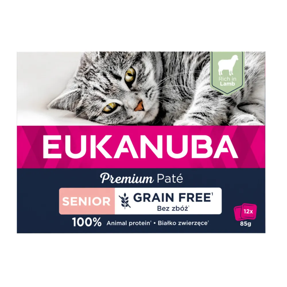 De Eukanuba Graanvrije Paté Senior Kat is een complete premiumvoeding voor senior katten en biedt een alternatief voor katten met speciale voedingsbehoeften. Met 100% dierlijk proteïne (van het totale proteïne gehalte) Deze paté draagt bij aan de ontwikkeling en het behoud van soepele spieren zoals dat met een plantaardig eiwit nooit mogelijk zou zijn. Het is een uitgebalanceerde, complete voeding van wereldklasse die je in alle opzichten helpt bij deze uitdaging.