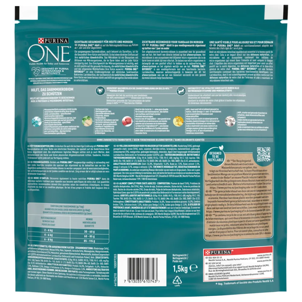 Deze voeding is speciaal gemaakt voor volwassen katten van één jaar en ouder. Met een unieke nutritionele formule met heilzame functionele bacteriën, waarvan wetenschappelijk bewezen is dat ze de natuurlijke afweer van jouw kat versterken van binnenuit
