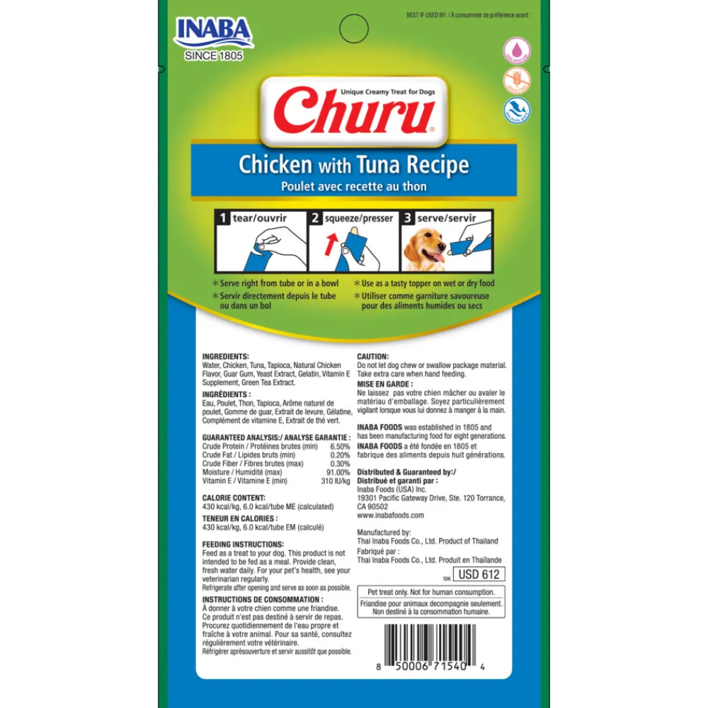 Deze romige traktaties voor honden zijn gemaakt met 100% pure en natuurlijke op de boerderij geteelde kip en wilde tonijn! Verkrijgbaar in vijf verrukkelijke variëteiten, Churu ® Purées zijn hoog in vochtgehalte honden nodig hebben voor de gezondheid. Scheur gewoon een tube open en knijp er een beetje in om deze graanvrije, conserveermiddelvrije traktaties met de hand te voeren. Je kunt ze ook in een kom gieten of gebruiken als een smakelijke topper op nat- of droogvoer.