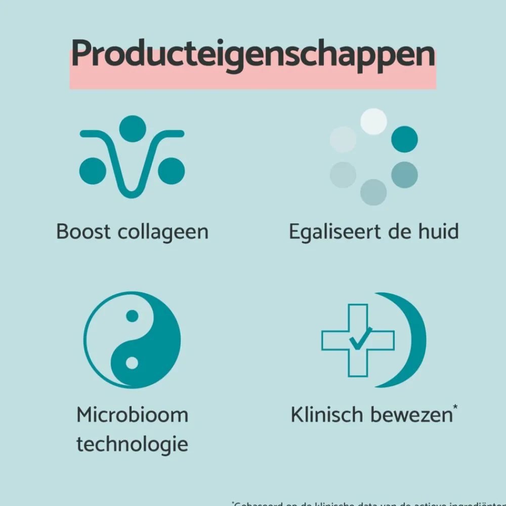 Deze unieke technologie heeft een positieve invloed op het ecosysteem aan bacteriën in en op de huid. Een goed gereguleerd microbioom zorgt voor een sterke huidbarrière en een gezonde, stralende huid.