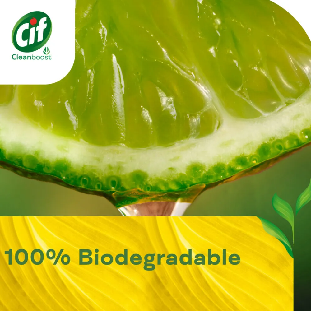 Cif CleanBoost Cream Citroen Schuurmiddel met 100% natuurlijke schuurbestanddelen – de beste Cif Cream ooit. Cif schuurmiddel biedt een superieur schoonmaakresultaat in combinatie met een eco-ontworpen formulering en verpakking. Cif CleanBoost Cream Citroen Schuurmiddel bevat een formule van 97% biologisch afbreekbare bestanddelen die het vuil lokaliseren en elimineren.