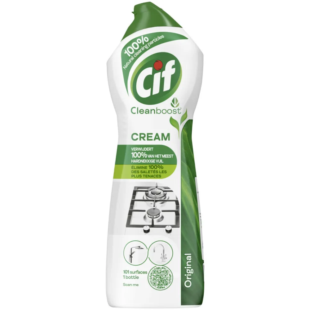 Cif Cleanboost Cream Original Schuurmiddel is hard tegen vuil, maar vriendelijk voor je huis. Het is 1 superieur schoonmaakproduct voor 101 oppervlakken en toepassingen in en rondom je huis. Cif Cream Original Schuurmiddel verwijdert 100% van het meest hardnekkige vuil* en geeft een schitterend schoon eindresultaat. Naast dat dit schuurmiddel alle soorten vuil verwijdert, laat het ook nog eens een heerlijke, frisse geur achter. Dit zorgt niet alleen voor een fris ruikend huis, maar ook voor een hygiënisch gevoel tijdens het schoonmaken. Cleanboost Cream Original bevat 100% natuurlijke schuurbestanddelen en een eco-ontworpen formule met biologisch afbreekbare bestanddelen die vuil lokaliseren en verwijderen.