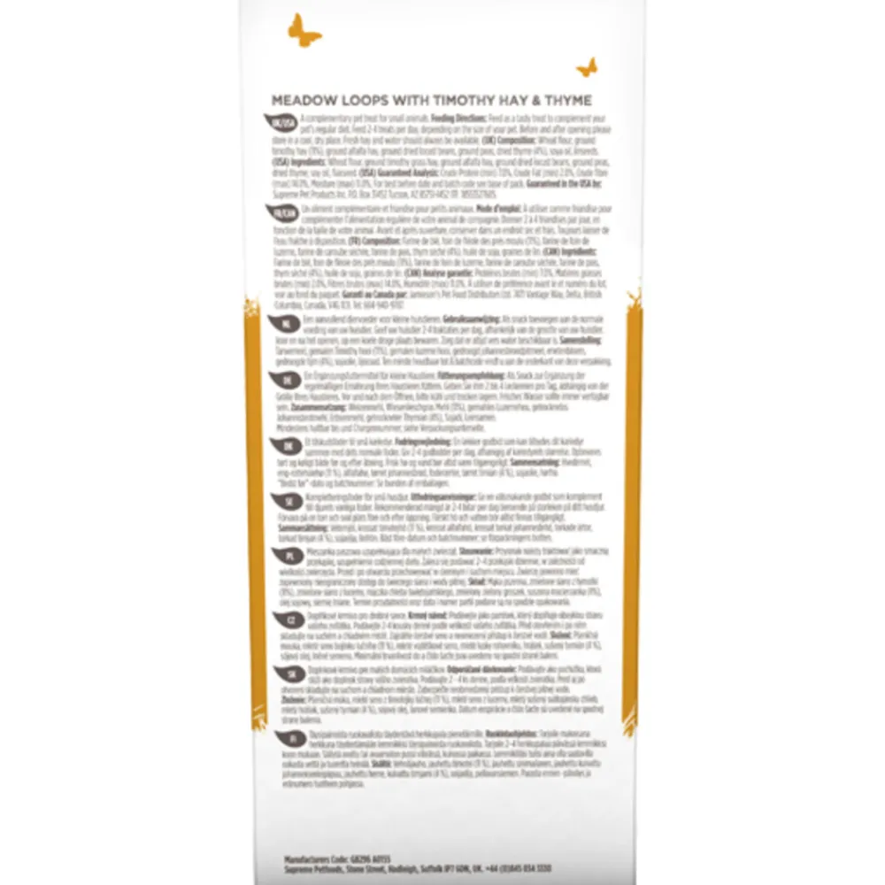 Deze heerlijke en natuurlijke snack van Supreme Selective is speciaal ontwikkeld voor konijnen, cavia’s, chinchilla’s en degoes. De snack is heerlijk krokant, rijk aan tijm en timothy hooi en bevat daarnaast geen toegevoegde suikers. Een heerlijk tussendoortje voor je konijnen en knager!