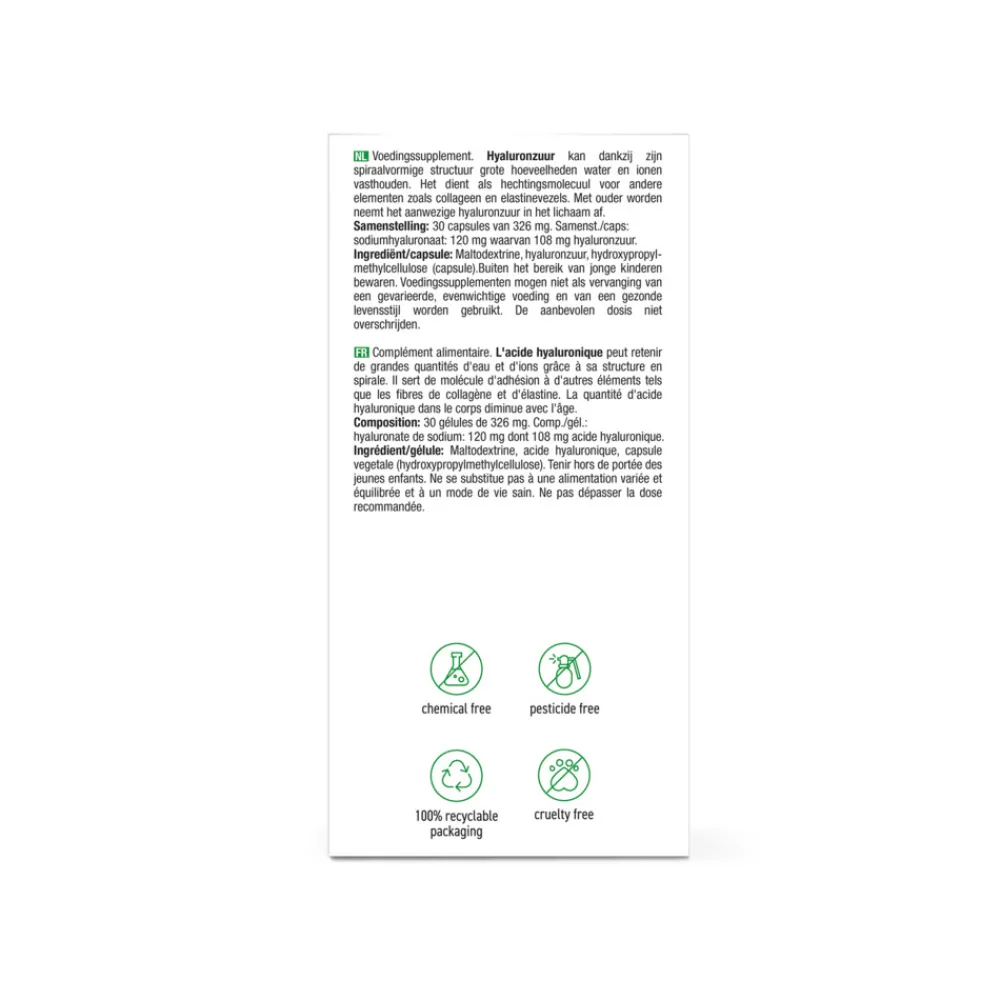 Maltodextrine, hyaluronzuur, hydroxypropylmethylcellulose (capsule).