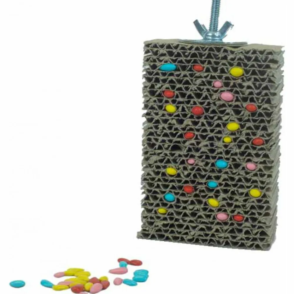 Dit leuke kartonnen bord van Back Zoo Nature kun je vullen met heerlijke snoepjes. In de gleuven van het karton kun je van alles verstoppen zoals pitjes, nootjes of snoepjes. Je vogel kan zo op een speelse manier een lekkere traktatie krijgen.