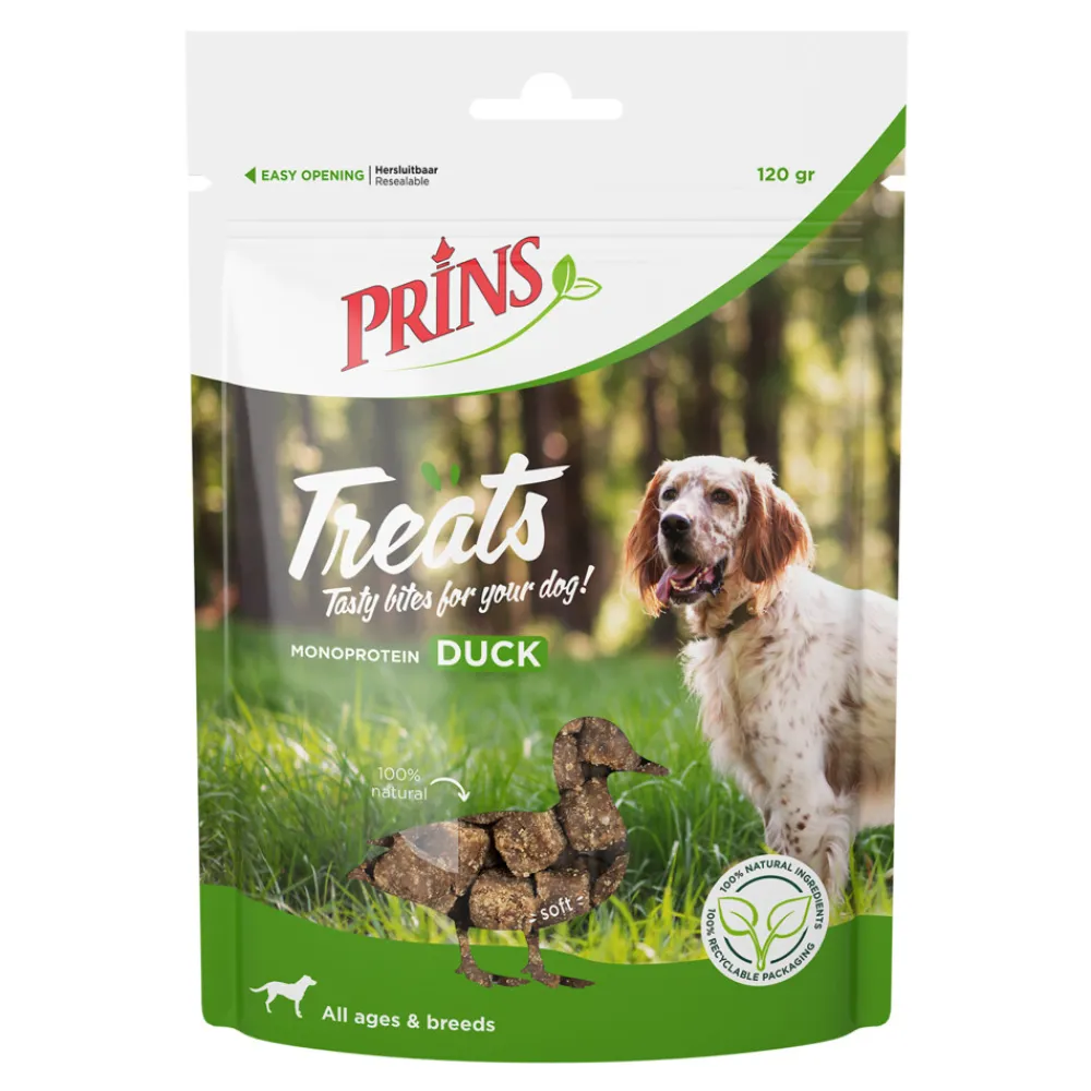 Prins Treats Hondensnacks Eend is een hoogwaardige traktatie voor jouw trouwe viervoeter. Deze lekkernij is speciaal ontworpen om makkelijk te breken, zodat je het kunt aanpassen aan de grootte en behoeften van je hond. Het is verantwoord om te geven, omdat het gemaakt is met zorgvuldig geselecteerde eend van de hoogste kwaliteit. Met slechts één dierlijke eiwitbron is het geschikt voor honden met voedselgevoeligheden of allergieën. Prins Treats Hondensnacks Eend wordt geleverd in recyclebare verpakkingen, waardoor je niet alleen je harige vriend verwent, maar ook bijdraagt aan een duurzamere wereld. Geef jouw hond een smakelijke en verantwoorde beloning met Prins Treats Hondensnacks Eend!