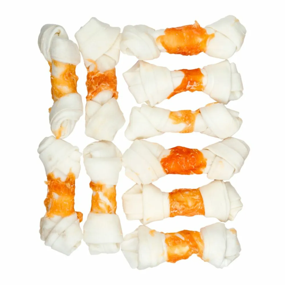 Kauwsnack gemaakt van 100% runderhuid met kip. Deze wordt gewassen, opgerold en dan geperst. Deze kauwsnack draagt bij aan het voorkomen van tandplak.