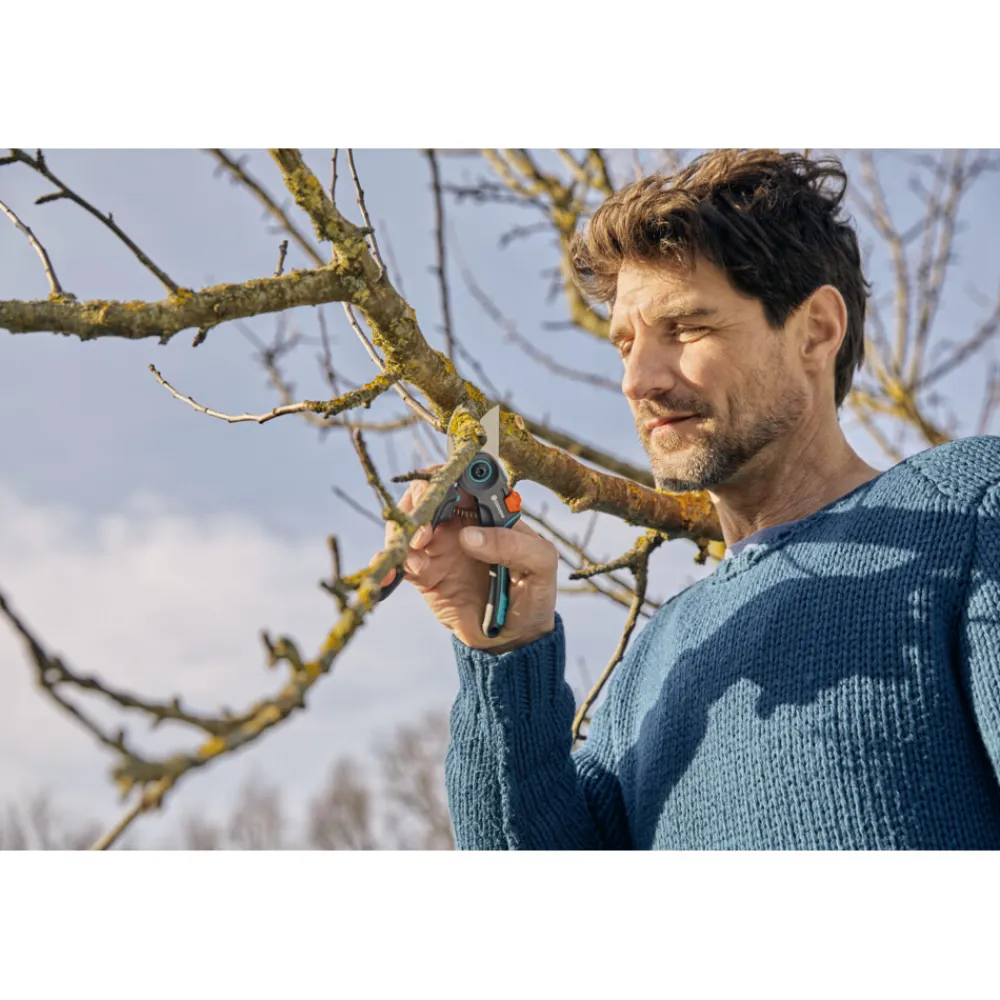 De ExpertCut-snoeischaar van Gardena is de ideale snoeischaar voor hobbytuinierders. Deze snoeischaar voor planten, bomen en struiken is ideaal voor iedereen die veel waarde hecht aan nauwkeurig en grondig snoeien, eersteklas vakmanschap met hoogwaardige materialen en bovenal veel duurzaamheid. De bladen hebben een hardheid van maximaal 60 HRC dankzij een extra fase in het verhardingsproces. Hierdoor is de schaar niet alleen erg scherp en nauwkeurig, maar ook heel robuust. De schaar is echter niet alleen indrukwekkend qua werking, maar ook qua ergonomie. De handgreep met verstelbare gripbreedte maakt de schaar bijzonder geschikt voor kleine en middelgrote handen. Het maakt niet uit of de gebruiker links- of rechtshandig is, de schaar is ontworpen voor beide handen. Het praktische vergrendelingsmechanisme kan ook met één hand worden bediend, waardoor de ExpertCut van Gardena in slechts één greep kan worden vastgezet en net zo gemakkelijk weer kan worden geopend. Tijdens het knippen is de gepatenteerde sapafvoer in het roestvrijstalen blad ook uiterst praktisch. Hierdoor blijft het blad langer beschermd tegen kleverig plantensap. Het blad kan na gebruik eenvoudig worden schoongemaakt. De ExpertCut-snoeischaar wordt gemaakt in Duitsland. Gardena onderstreept de uitstekende robuustheid van de snoeischaar en geeft een uitgebreide garantie van 35 jaar op deze speciale Made in Germany-kwaliteit.