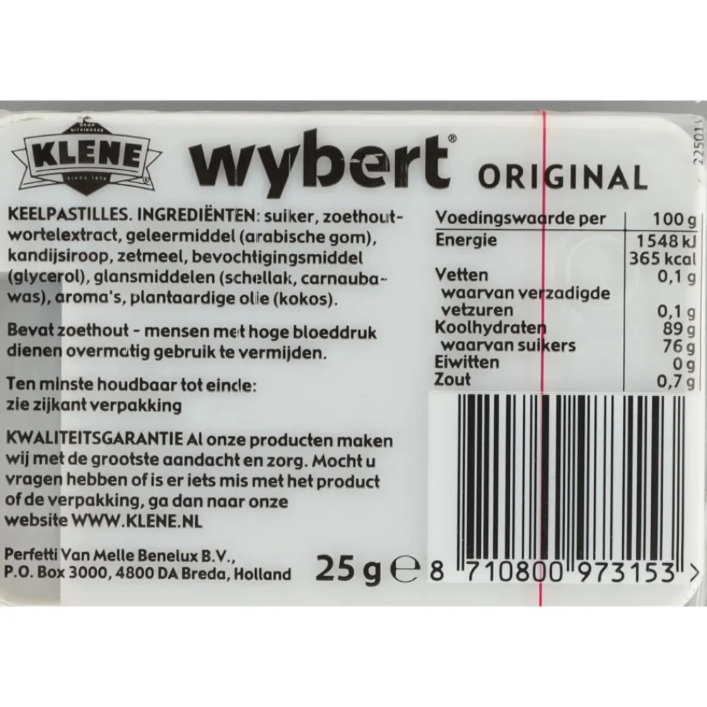 Wybert is de lekkerste keelverzachter van Klene en bekend om de unieke ruitvorm. Wybert is het enige snoepje dat het gepresteerd heeft om in de Dikke van Dale te komen.