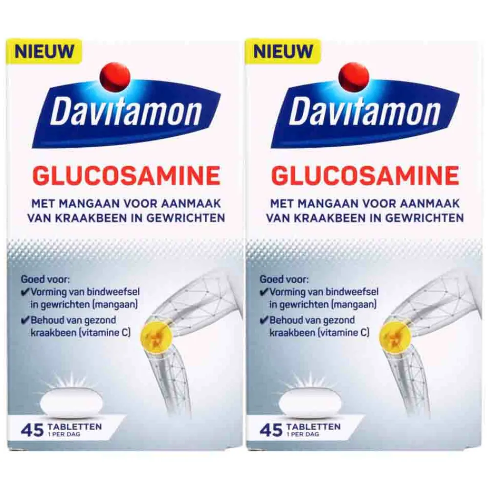 Davitamon Glucosamine bevat naast glucosamine Mangaan en vitamine C. Mangaan is goed voor aanmaak van kraakbeen in gewrichten. Om soepel te kunnen blijven bewegen is gezond kraakbeen in de gewrichten, dat werkt als een kussen om schokken op te vangen, zeer belangrijk. Voor knieën, heupen, ellebogen en vingers is het belangrijk om de gewrichten dagelijks te bewegen. Daarnaast draagt Mangaan bij aan de normale vorming van bindweefsel o.a. in de knieën, heupen, ellebogen en vingers en draagt bovendien bij aan de instandhouding van gezonde botten.
