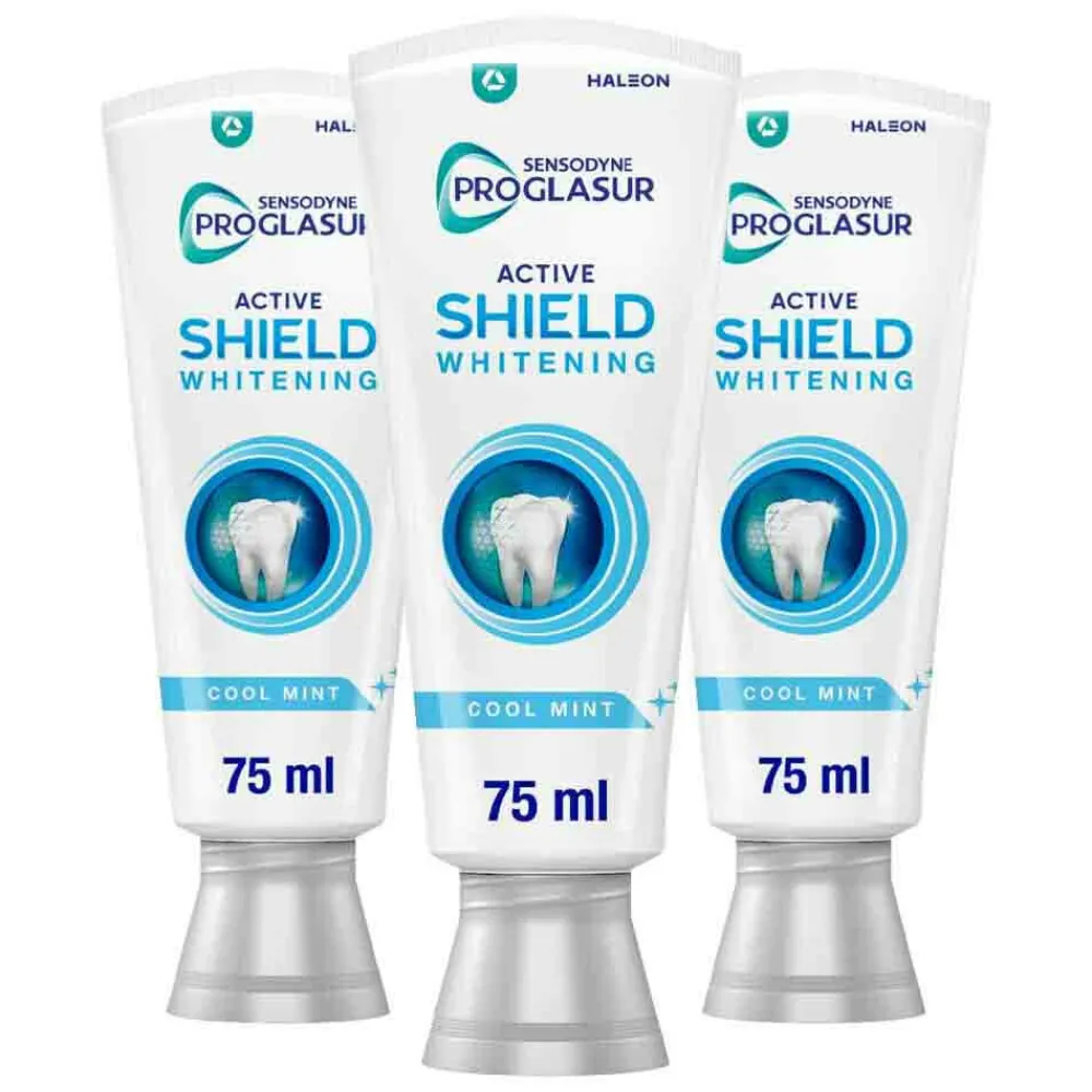 Sensodyne Proglasur Active Shield Whitening Tandpasta beschermt je tandglazuur actief tegen gaatjes en voedingszuren. De tandpasta met whitening effect helpt bij het opbouwen van glazuurweerstand voor sterke en gezonde tanden. De tandpasta met verse munt zorgt voor een schoon en fris gevoel. De tube is volledig recyclebaar en zit in een gerecycled kartonnen doosje.