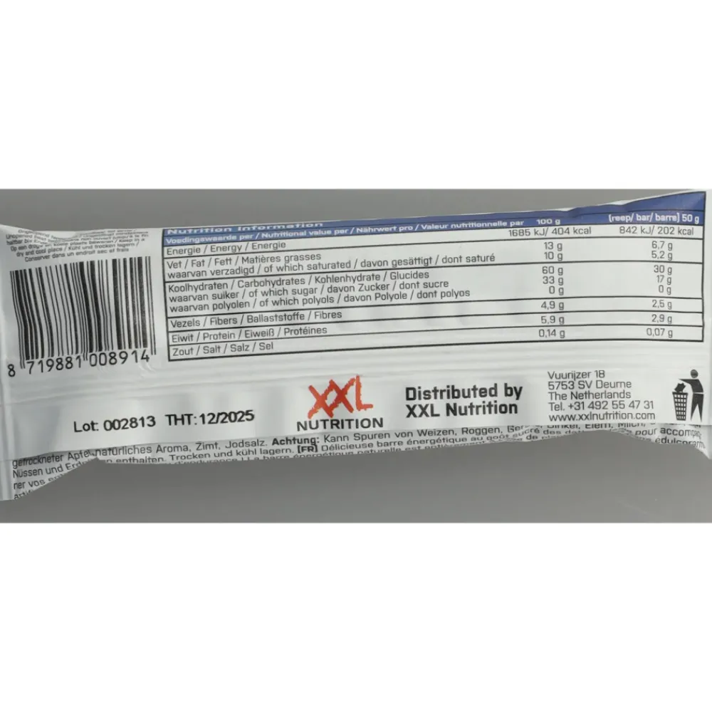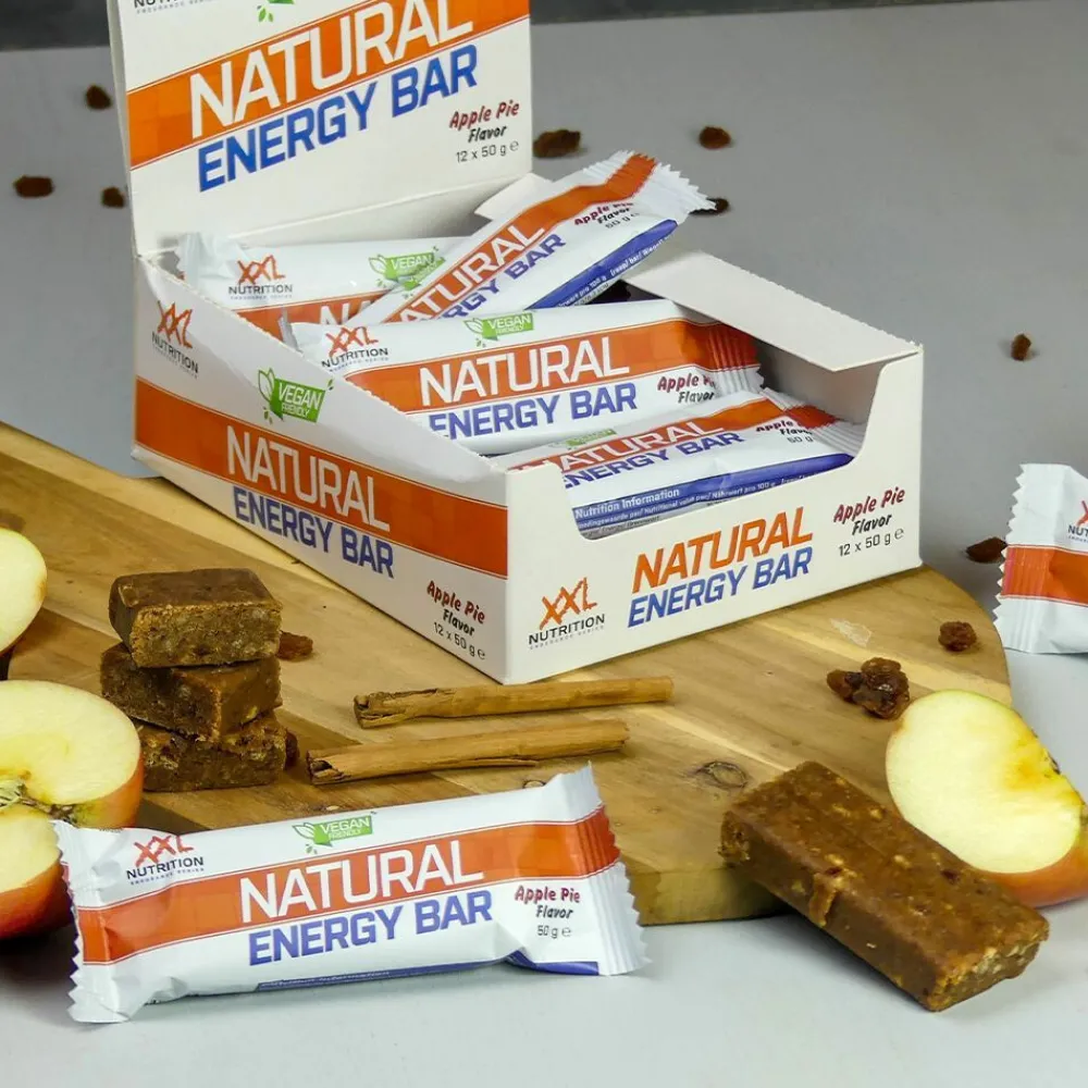 XXL Nutrition Natural Energy Bar Apple Pie is een heerlijke energiereep en ideaal om voor je kracht- of duurtraining te gebruiken of als voedzame snack tussendoor. De Natural Energy Bar is gemaakt van natuurlijke ingrediënten zoals dadels, haver en kaneel. Tevens zijn de Natural Energy Bars vrij van kunstmatige zoetstoffen en lactose en passen deze perfect binnen een veganistische levensstijl. En dit alles voor nog geen 190 kcal per reep.