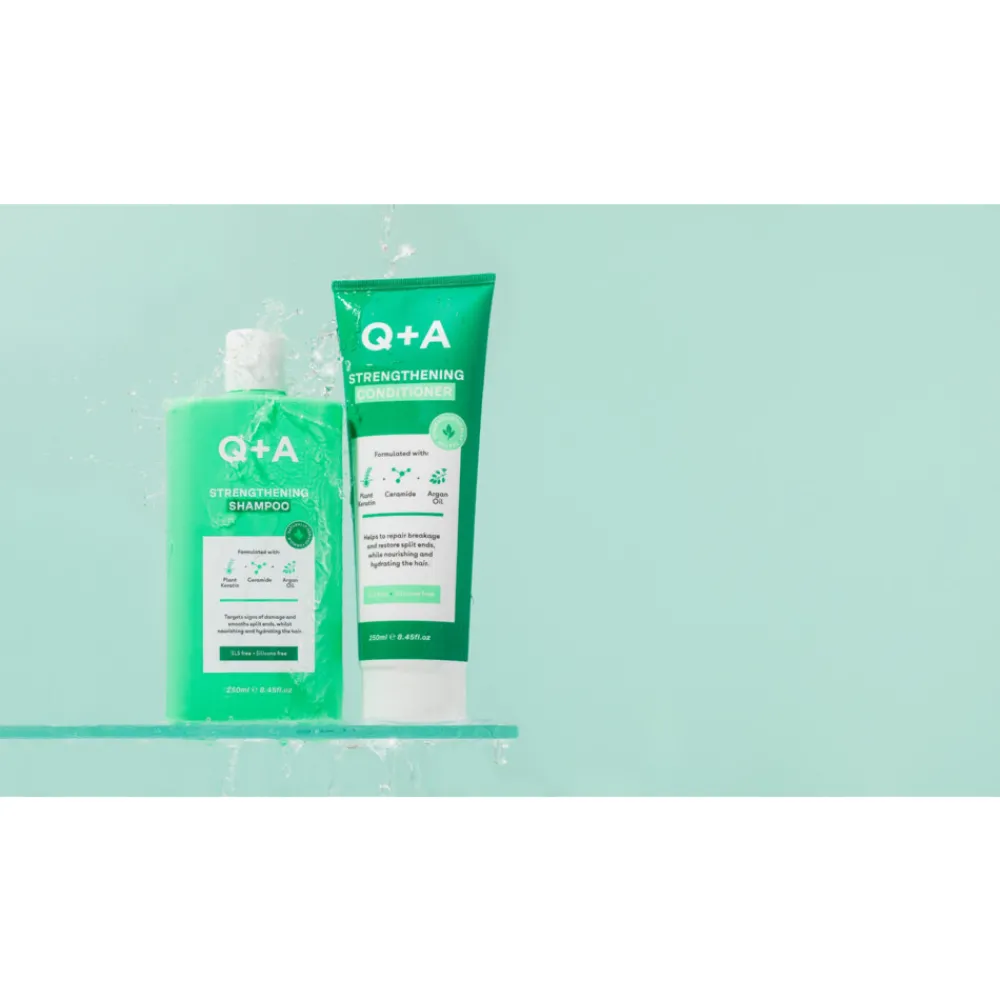 Ontdek de Q+A Strengthening Conditioner – perfect voor iedereen die verlangt naar gezond, sterk en glanzend haar. Geschikt voor alle haartypes, deze duo-formule is speciaal ontwikkeld om gespleten haarpunten te verminderen en tegelijkertijd de lengte, kracht en vochtbalans van je haar te verbeteren. De conditioner is verrijkt met plantaardige Keratine, bekend om zijn anti-breuk eigenschappen, en beschermende Ceramide die de natuurlijke barrière van het haar herstelt. Dit krachtige duo voedt zowel het haar als de hoofdhuid, en ondersteunt een moeiteloos effectieve haarverzorgingsroutine.