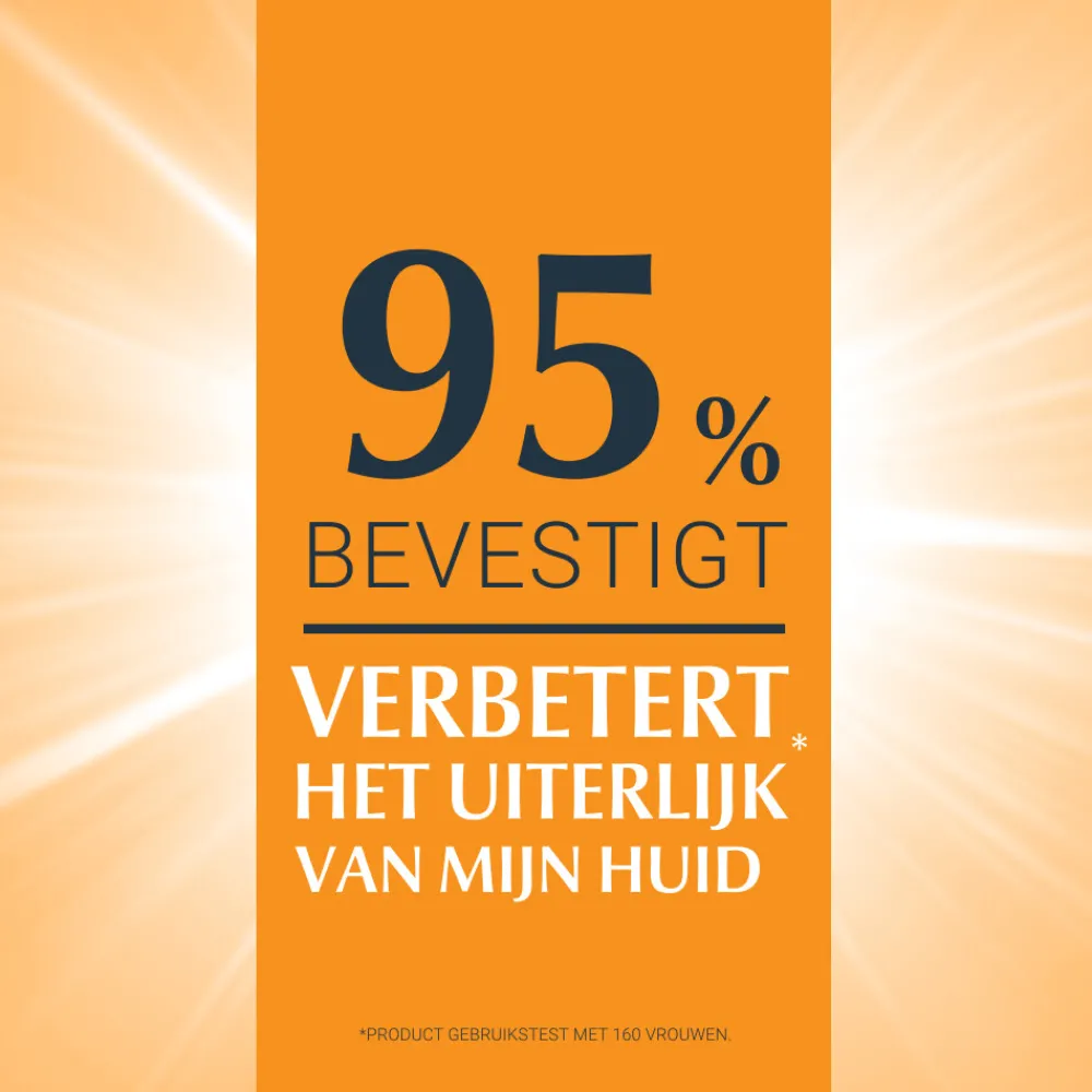 Beschermt tegen verbranding. Voorkomt vroegtijdige huidveroudering en vermindert bestaande rimpels door toegevoegd hyaluronzuur.