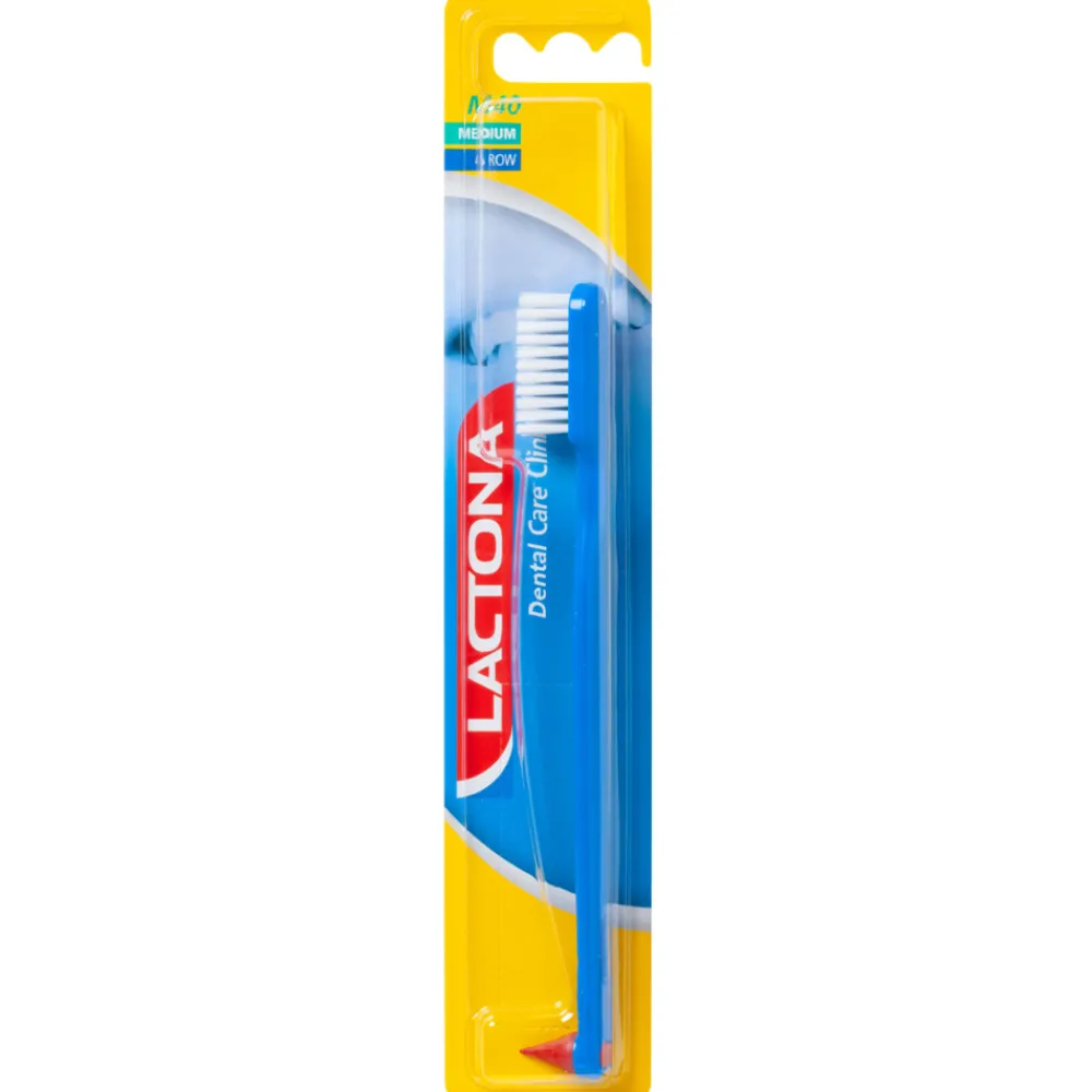 Deze borstel heeft een breed borsteloppervlak en bestaat uit 4 rijen nylon borstelharen. De steel heeft een smalle hals, is compact en breed voor een goede grip. De afgeronde borstelharen verminderen de kans op beschadiging van tanden en tandvlees en zorgen voor een optimale verwijdering van tandplak.