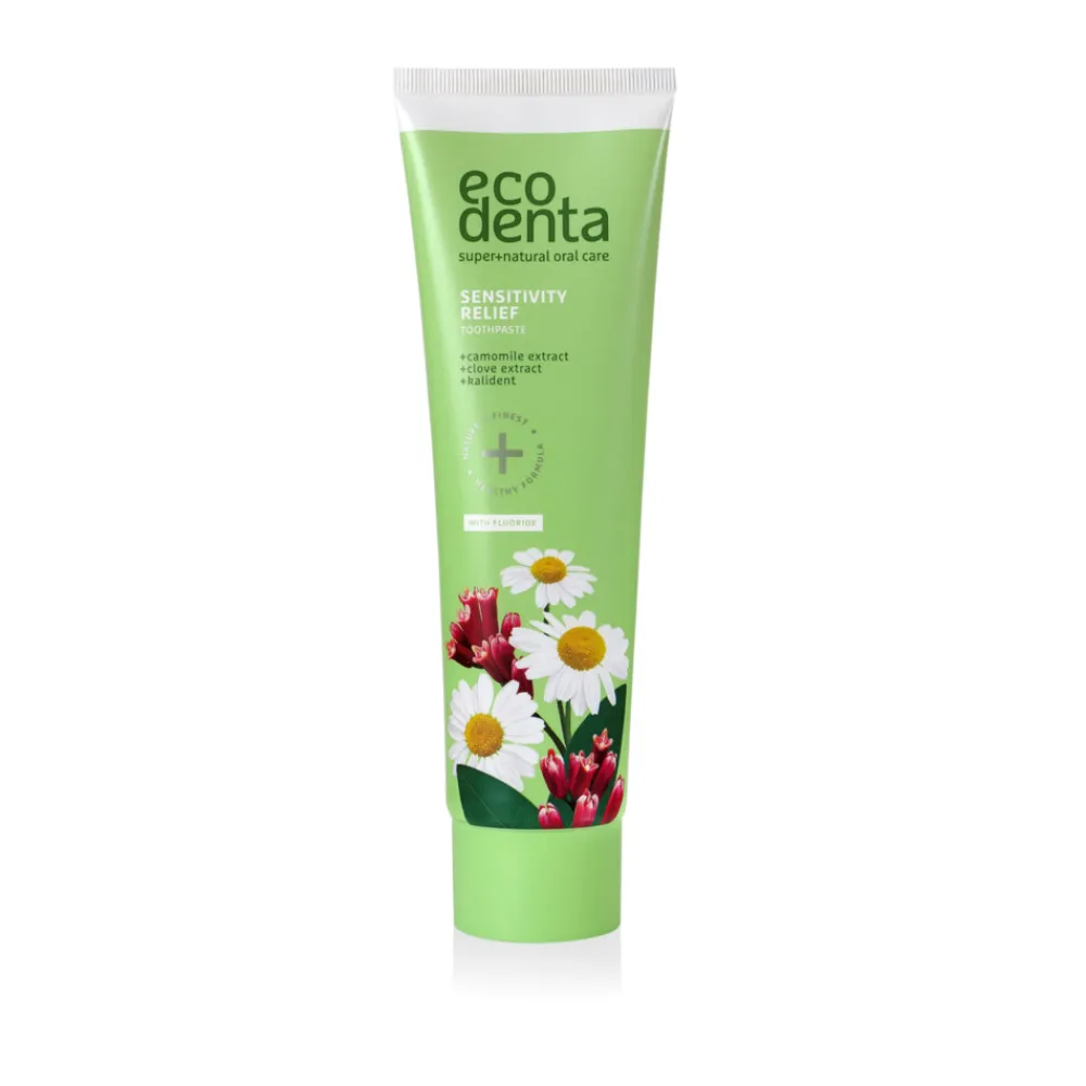ECODENTA Tandpasta Gevoelige Tanden met Kamille kruidnagel extracten en Kalident is een tandpasta speciaal ontworpen voor de gevoelige tanden. Deze tandpasta heeft een tweedelig effect op gevoelige tanden: extracten van kamille en kruidnagel verlichten de gevoeligheid van de tanden en tandvlees. Daarnaast versterkt Kalident, een natuurlijke bron van calcium, het tandglazuur en helpt micro-scheurtjes en krassen in het tandglazuur te voorkomen. Om merkbare resultaten te ervaren, moet de tandpasta voor een langere periode worden gebruikt.