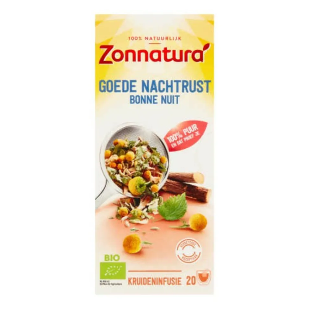 Zonnatura Goede Nachtrust is een thee op basis van alleen pure biologische kruiden. Het is een kruidenmelange van ondermeer citroenmelisse, valeriaan en kamille. Deze speciaal geselecteerde melange is zoet van smaak en geschikt voor een heerlijk rustmoment voor jezelf, na alle hectiek van de dag. De biologische thee past in een gevarieerd voedingspatroon en een gezonde levensstijl.