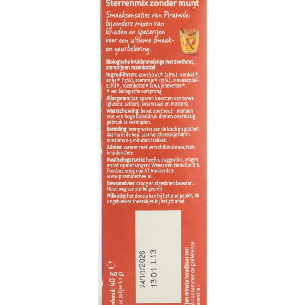 Thee<Piramide 3x Biologische Theezakjes Sterrenmix Zonder Munt 20 stuks