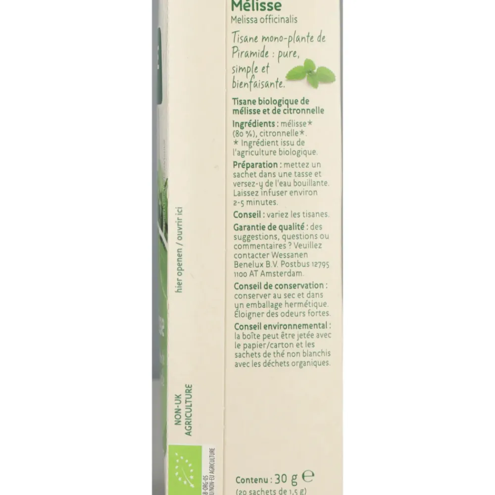 De biologische kruidenthee met Citroenmelisse van Piramide is van biologische oorsprong en helpt bij een natuurlijke ontspanning.