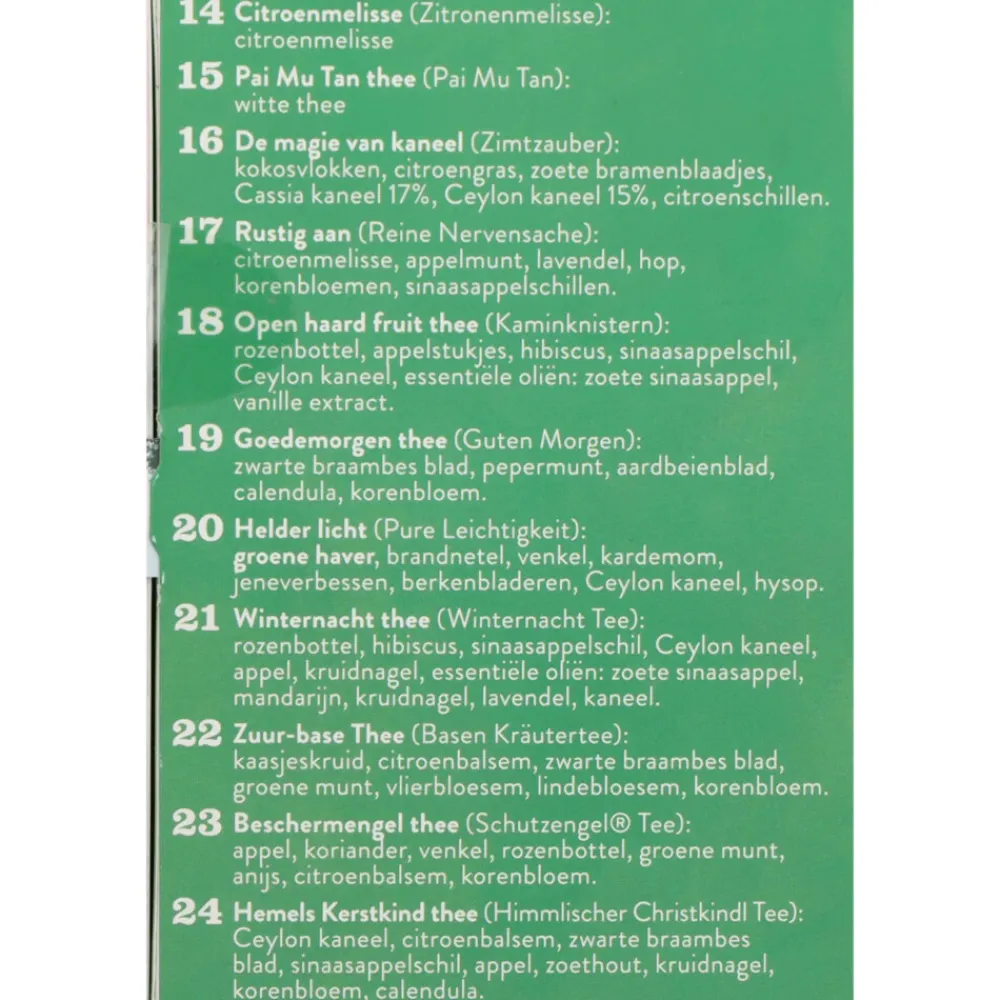 Tel mee af naar Kerstmis met 24 verschillende smaken thee. Onder het motto ‘Laat de voorpret beginnen!’ leidt deze Adventskalender Thee je door de periode vóór Kerstmis. 24 geurende smaken -van populaire klassiekers tot pittige noviteiten- brengen je elke dag een beetje dichter bij Kertsmis. Ontvouw de vleugels van de adventskalender tot een feestelijke blikvanger. Moge de heerlijke kruidentheeën je hart en ziel verwarmen