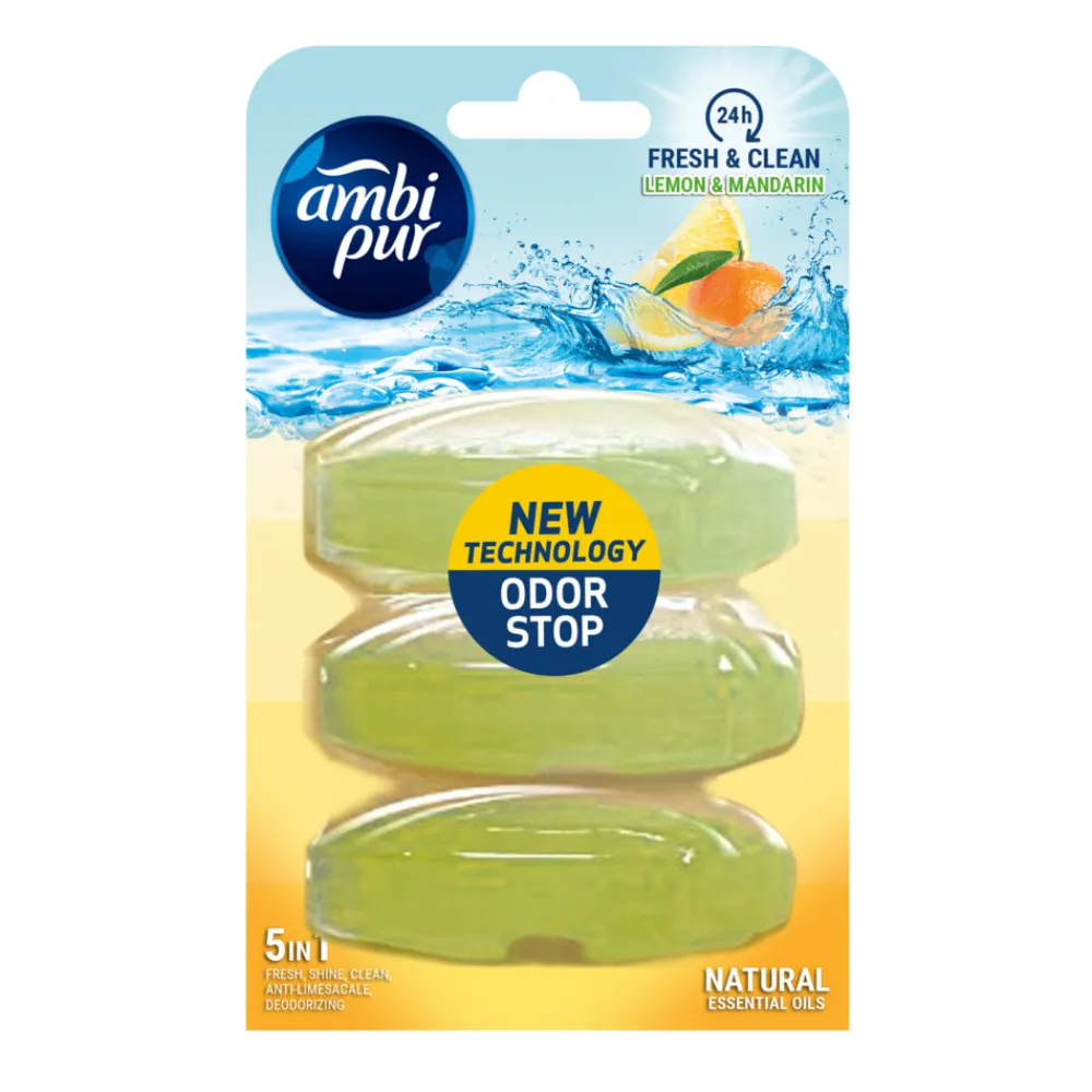 Ambi pur toiletblok Lemon & Mandarine navulling. Bevat natuurlijke essentiele olien. Voor een langdurig fris en schoon toilet.