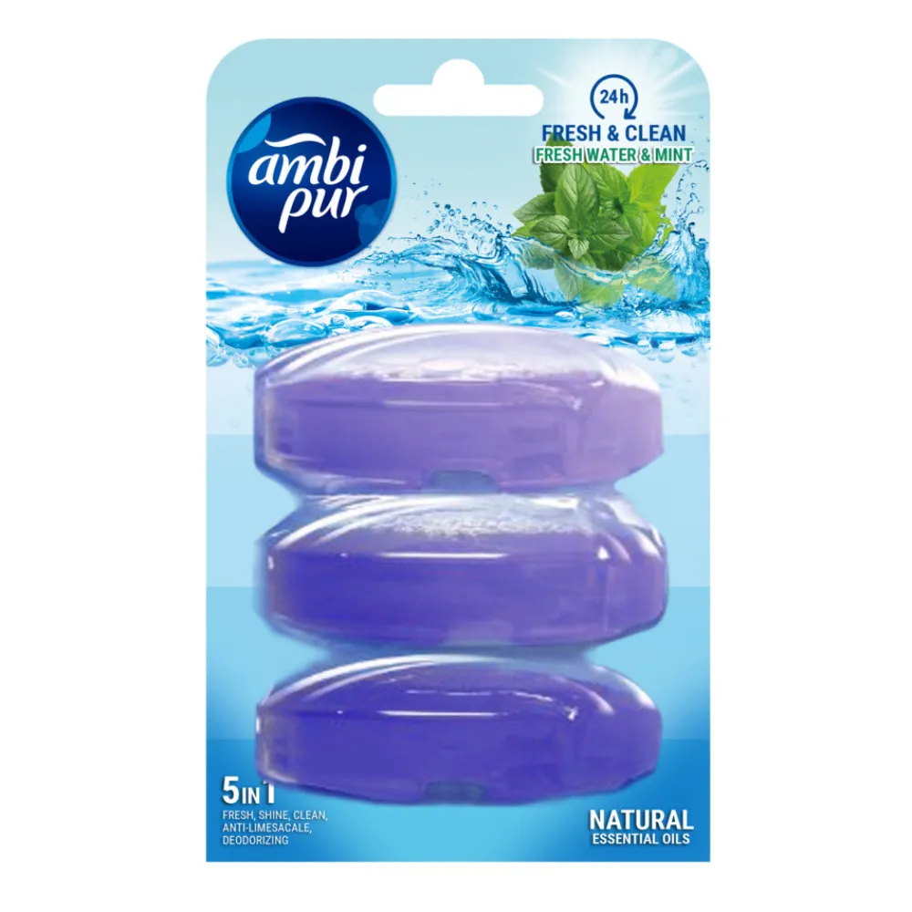 Ambi pur toiletblok Fresh water & Mint navulling. Bevat natuurlijke essentiele olien. Voor een langdurig fris en schoon toilet.
