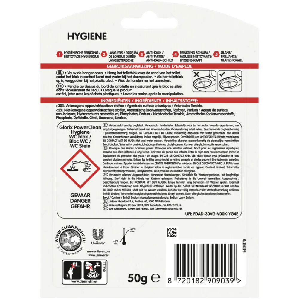 - Glorix toiletblokken zorgen elke spoelbeurt voor een hygiënische reiniging