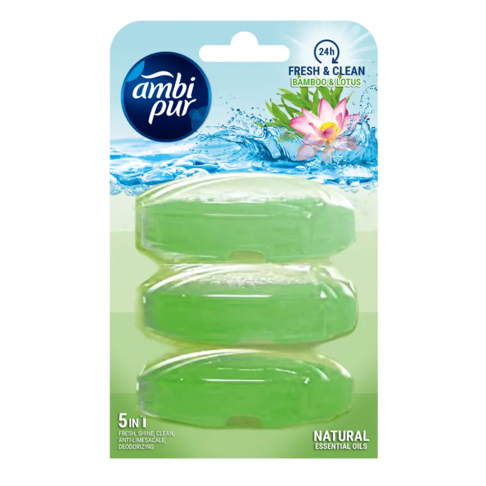 Ambi pur toiletblok Bamboo & Lotus navulling. Bevat natuurlijke essentiele olien. Voor een langdurig fris en schoon toilet.
