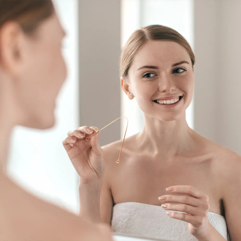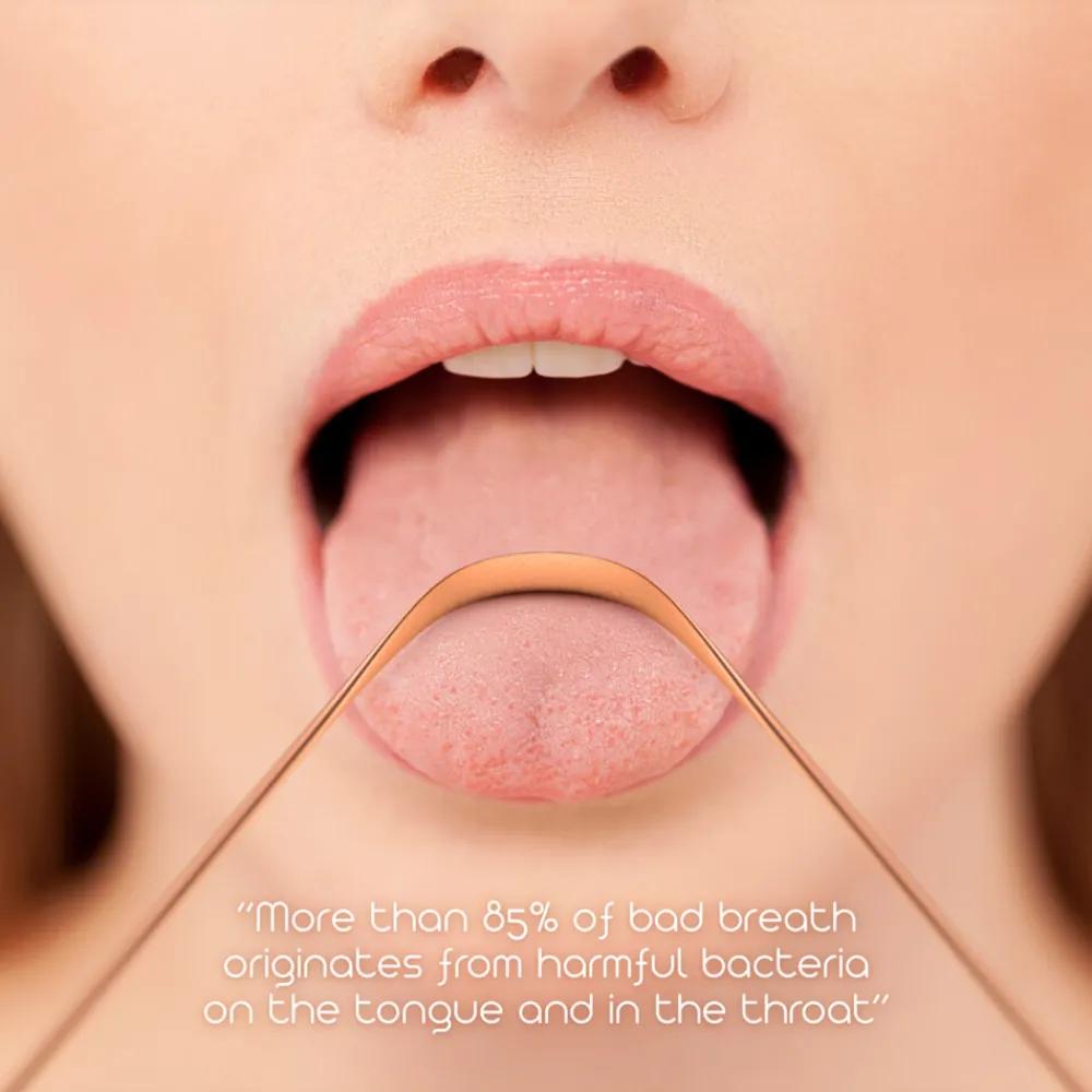 Een slechte adem? Poets dan niet alleen je tanden maar richt je op de bron van slechte adem door deze tongschraper aan je mondverzorgingsroutine toe te voegen. Ervaar de vele voordelen door het witte laagje van je tong te schrapen.