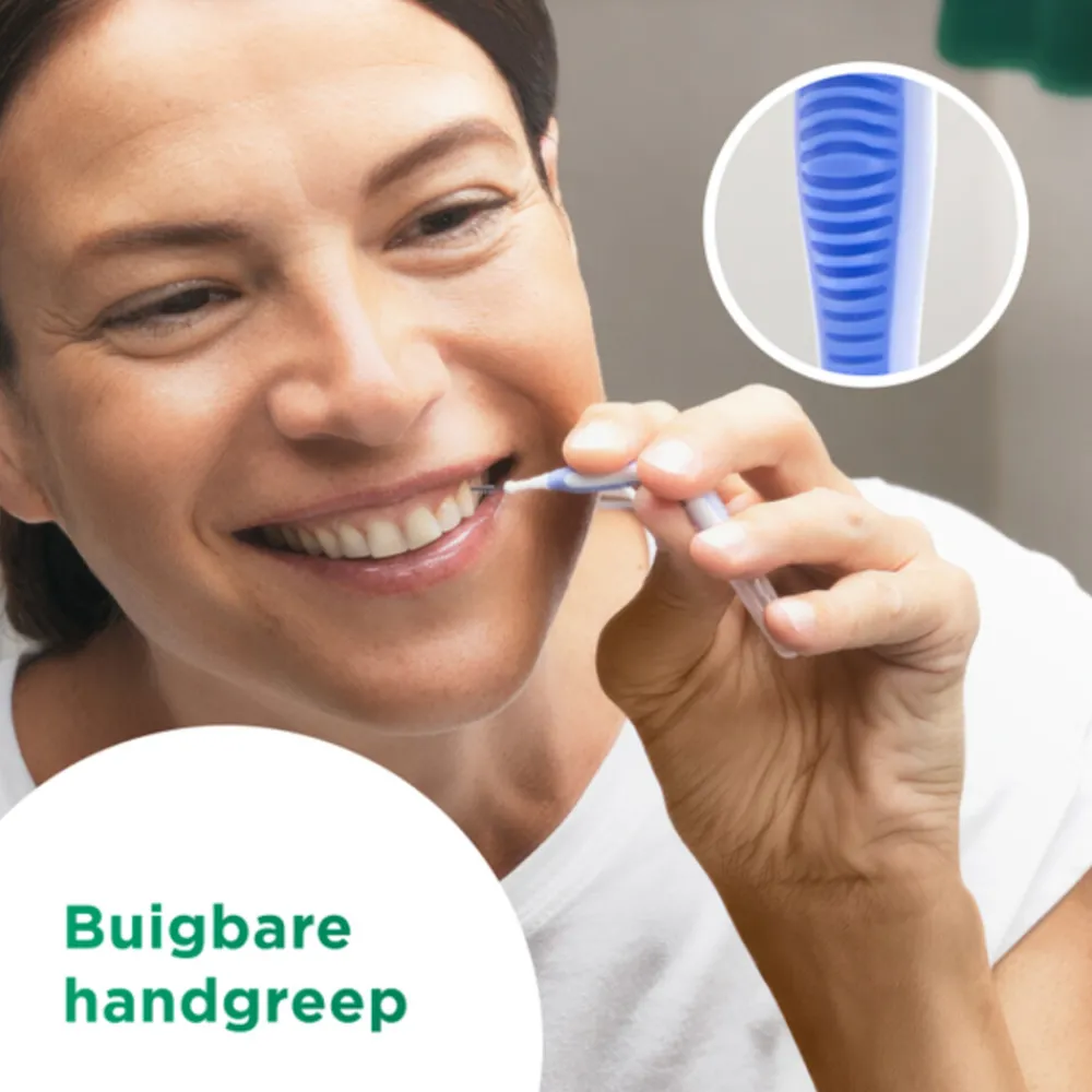 Er zijn 9 verschillende afmetingen van deze interdentale ragers beschikbaar in de range van 0.6 tot 2.0 mm. Dit is afhankelijk van de tussen ruimte tussen uw tanden. Bekijk de productvideo: