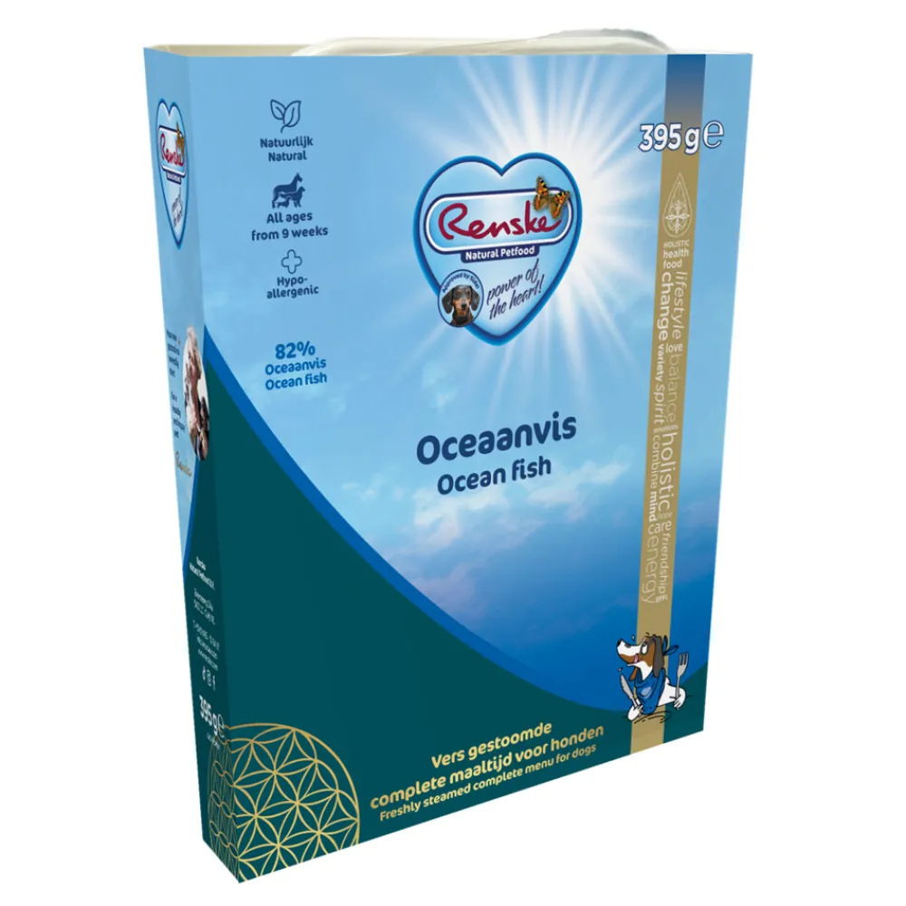 Renske Vers Gestoomd Complete Menu Oceaanvis is een vlees maaltijd voor jonge en volwassen honden van alle rassen vanaf 9 weken. De voeding bevat minimaal 82% vers gestoomde oceaanvis en is aangevuld met wat volkoren rijst, duurzaam geteelde moestuingroenten en kruiden. De zuivere, verse en natuurlijke ingrediënten zijn licht gestoomd en vacuüm geseald voor het behoud van de noodzakelijke voedingstoffen. Omdat het product gestoomd is, is het product 100% veilig en ideaal voor onderweg of op vakantie.