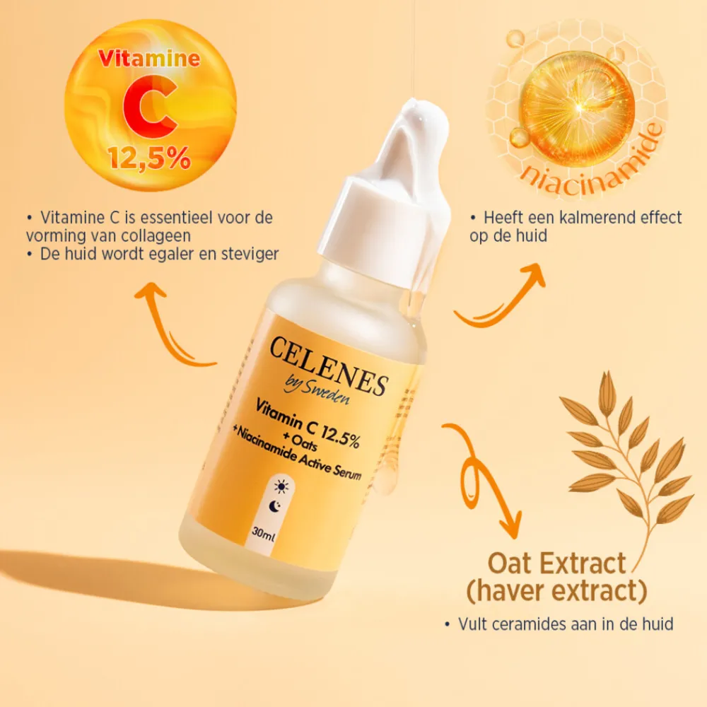 - Krachtig serum met 12,5% vitamine C, haver en niacinamide voor een stralende huid.