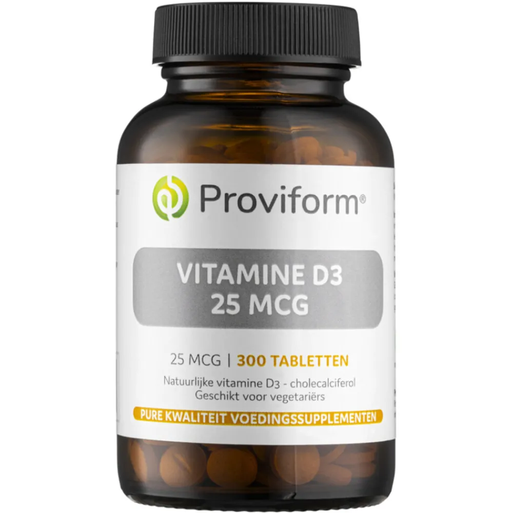 Proviform Vitamine D3 25 MCG is een voedingssupplement voor volwassenen. Vitamine D speelt een essentiële rol bij verschillende lichaamsfuncties zoals opname van calcium en fosfor uit de voeding en het behoud van sterke botten en tanden. Ook ondersteunt vitamine D een goede werking van de spieren. Proviform vitamine D3 levert een effectieve opname en is van natuurlijke oorsprong.