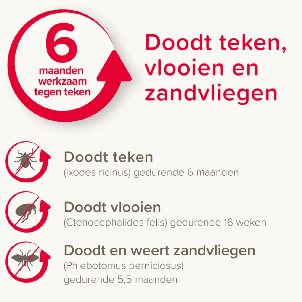 - Brede werking tegen teken, vlooien en zandvliegen