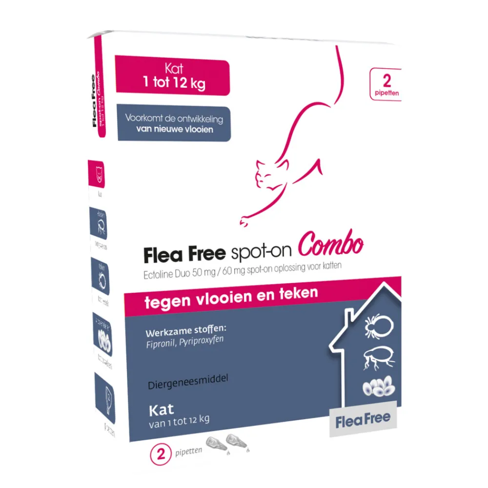 Vlo, Teek & Worm<Flea Free Spot-on Combo Anti Vlooiendruppels Kat vanaf 1 kg 2 pipetten