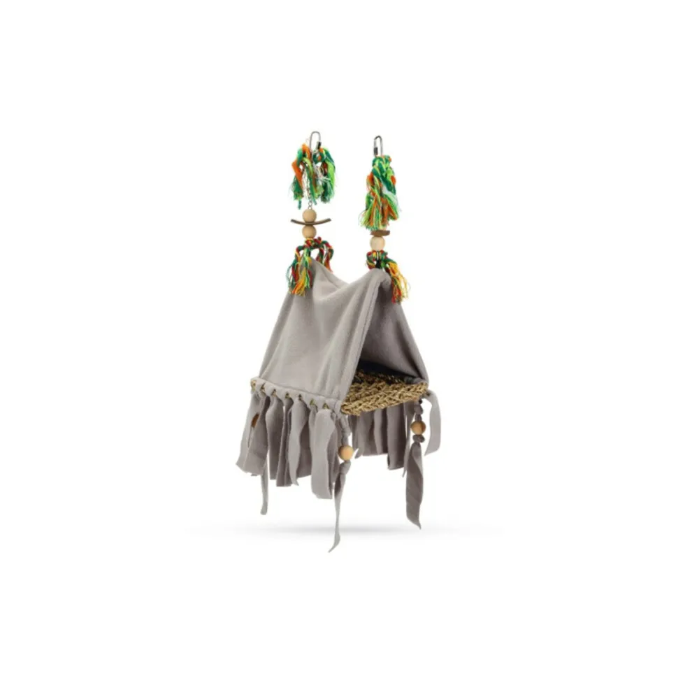 Met het Beeztees Ami Vogelhuisje voor in de vogelkooi, geef je jouw vogeltje zijn of haar eigen plekje. Dit vogelhuisje heeft iets weg van een tentje gemaakt van stof met een zeegras bodem waar jouw vogel op kan zitten of liggen. Dit vogelhuisje hang je eenvoudig op door middel van de haken. Met dit vogelhuisje geef je jouw vogelkooi een prachtige uitstraling! En, misschien nog wel belangrijker, jouw vogel zal het fantastisch vinden!