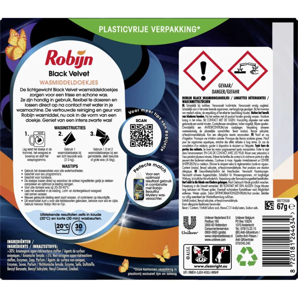 - Robijn Classics Black Velvet Wasmiddeldoekjes houden je was intens zwart