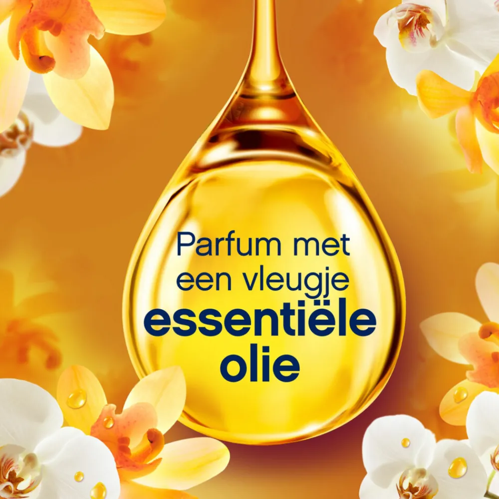 Lenor wasverzachter Amber & Orchidee geeft zen-momenten gedurende de dag dankzij 24 uur frisheid en een parfum met een vleugje essentiële olie. Geniet van het goede in het leven. De delicate orchidee-aroma’s vermengen zich op meesterlijke wijze met heerlijke vanilletonen en geven een warme geur die je ertoe inspireert om van elk moment te genieten.