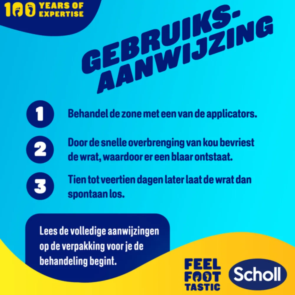 - Werkt door het snel bevriezen van de kern van de wrat en na het aanbrengen wordt een blaar gevormd.
