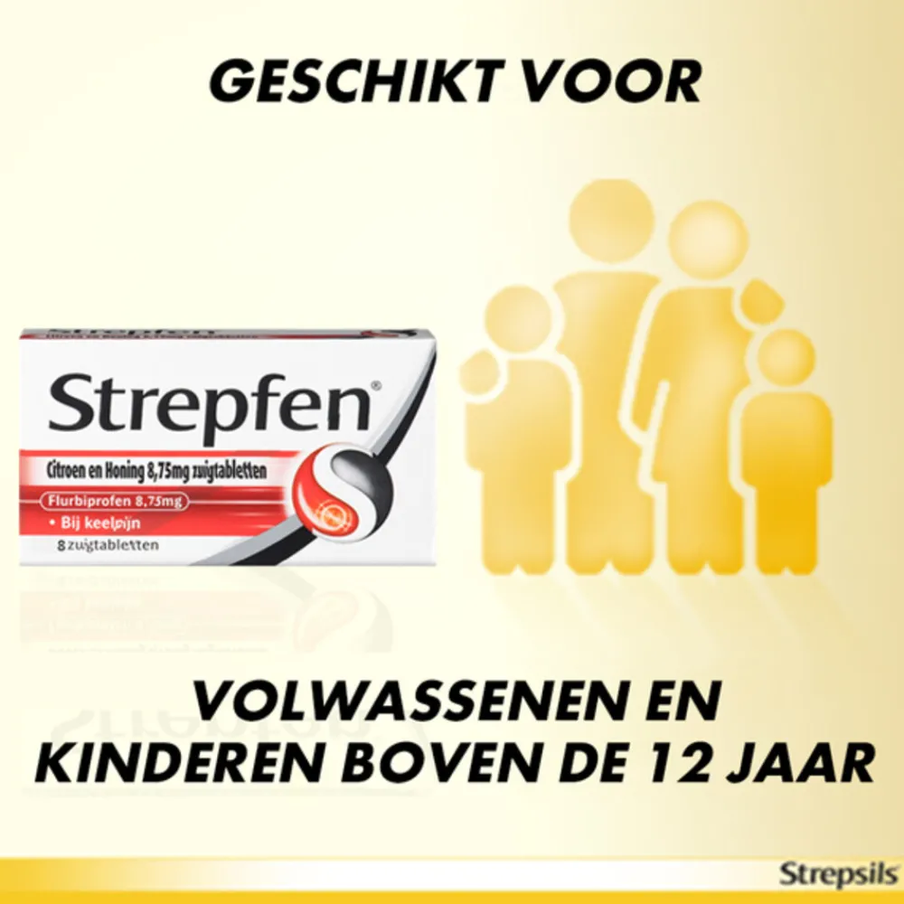 Voor volwassenen en kinderen van 12 jaar en ouder. Strepfen is niet geschikt voor kinderen jonger dan 12 jaar.
